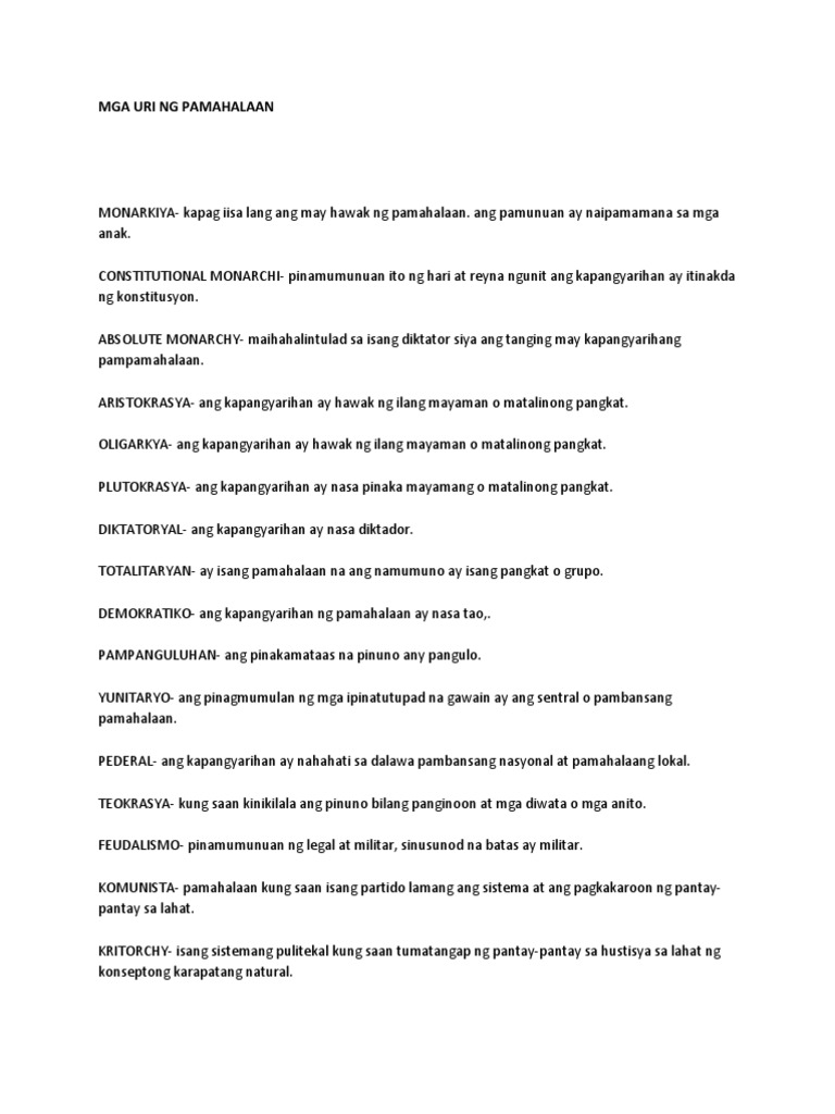 Mga Uri Ng Pamahalaan Types Of Government Youtube
